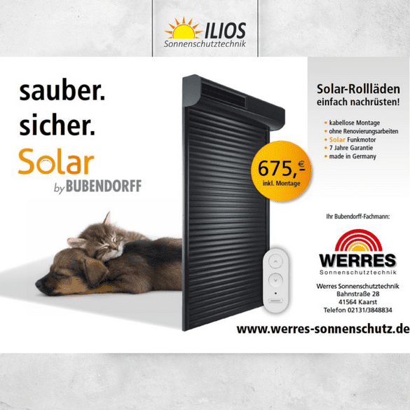 Sollten Sie unsere Expertise als gewerblicher Kunde wünschen, so leiten wir Sie gerne an die Firma Werres-Sonnenschutztechnik weiter.
